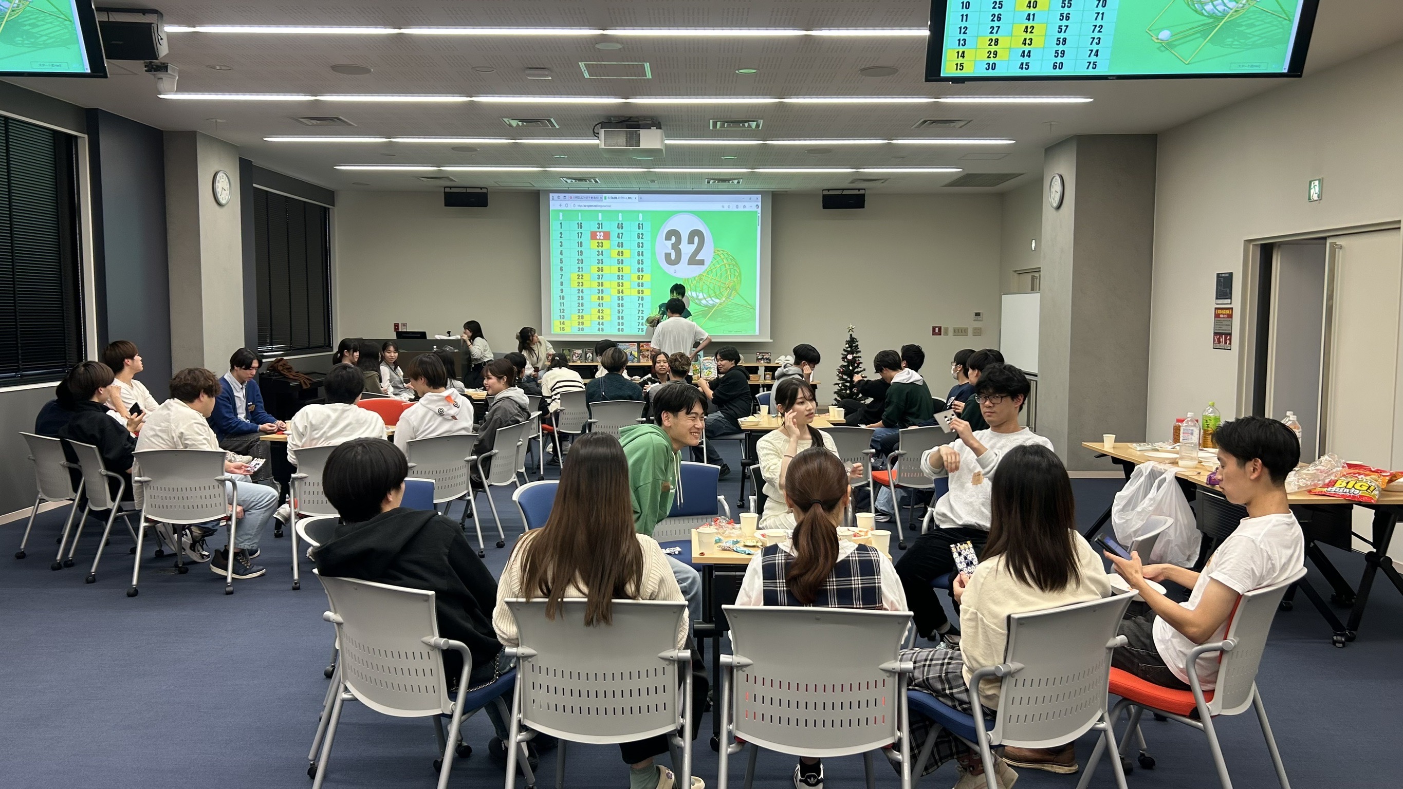 ビンゴゲームには皆で数字が出るたびに一喜一憂しながら、学生間でワイガヤコミュニケーションをとっていました。