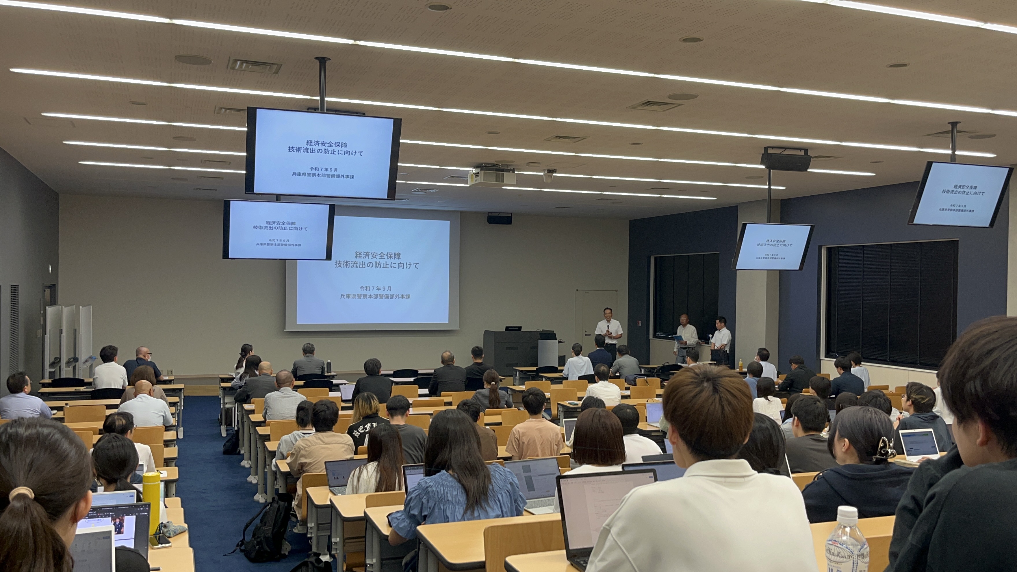 本学の学生・大学院生も陪席し、サイバー攻撃や企業の技術・情報・ノウハウの流出といった現代のリスクについて、